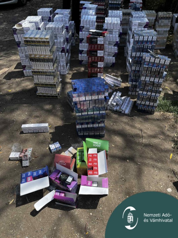A pénzügyi nyomozók azonnal a helyszínre érkeztek, ahol több mint 15 000 doboz zárjegy nélküli cigarettát, 39 darab Pocobart, 22,5 kg vágott dohányt, valamint 2 doboz potencianövelő szernek tűnő gyógyszert találtak, amiket lefoglaltak.